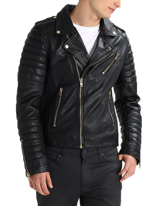 Introducing the Men's Black Biker Genuine Sheepskin Turn-Down Collar Casual Classic Café Racer Fashionable Sporty...