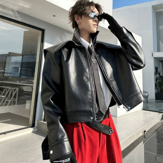 Step into timeless style with the Men’s Black Biker Genuine Sheepskin Shirt Collar Leather Jacket....