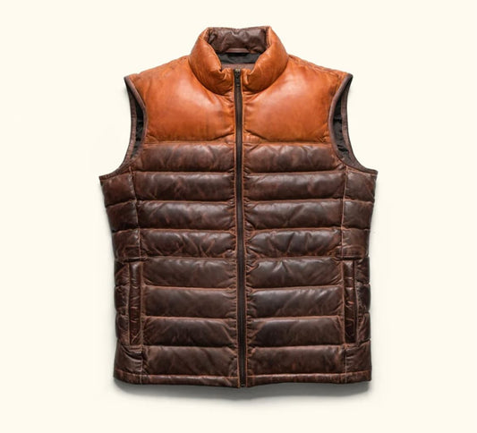 Unique Design: Stand out with the distinctive California Bear Leather Vest Down Jacket featuring striking...