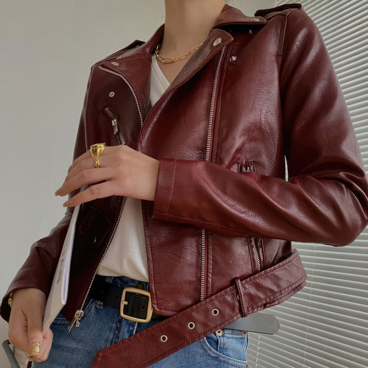 Women's Sheepskin Leather Motorcycle Jacket
