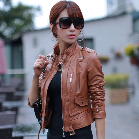 Unleash your inner biker with this fashionable Camel Brown leather jacket. Made from genuine sheepskin,...