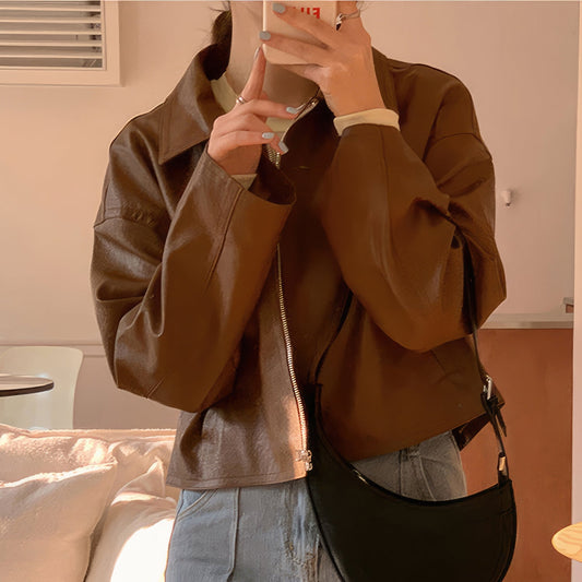 Elevate your style with this Women's Black Genuine Sheepskin Shirt Collar Cropped Fashion Classic Style...