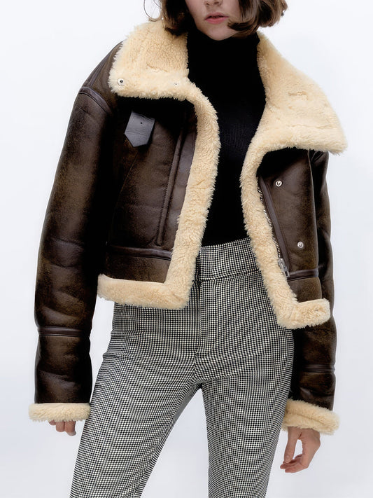 Stay warm and stylish with our Women’s Distressed Brown Genuine Lambskin Sherpa Shearling Faux Fur...