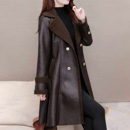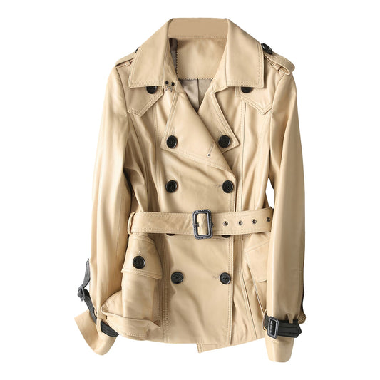 Women's Mid-Length Sheepskin Leather Trench Coat