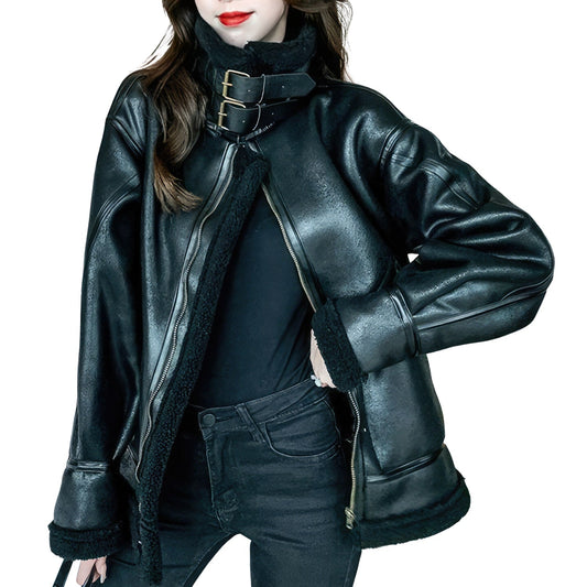 Elevate your style with this Women’s Black Biker Genuine Sheepskin Leather Jacket. The jacket is...