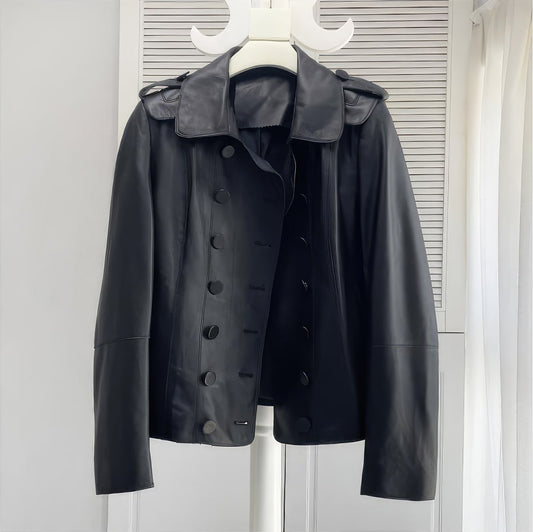 Enhance your office wardrobe with our Women’s Black Genuine Sheepskin Double Breasted British Style Smooth...