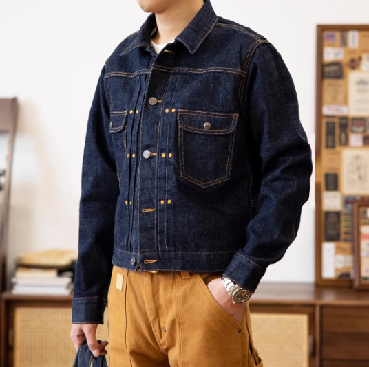11MJ Men's Rugged Wear Selvedge Denim Jacket: Unlined Western Jean Outerwear