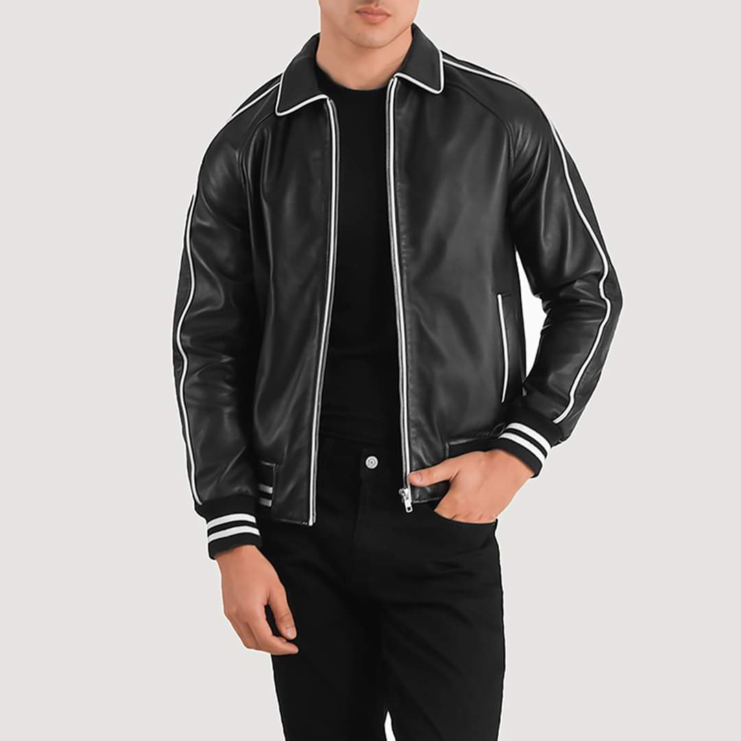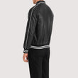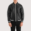 Black Leather Varsity Jacket for Men