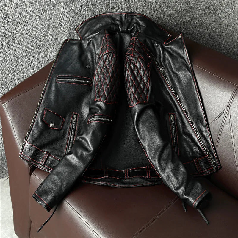 Brand New Cool Motorcycle Biker Jacket - Natural Cowhide Leather