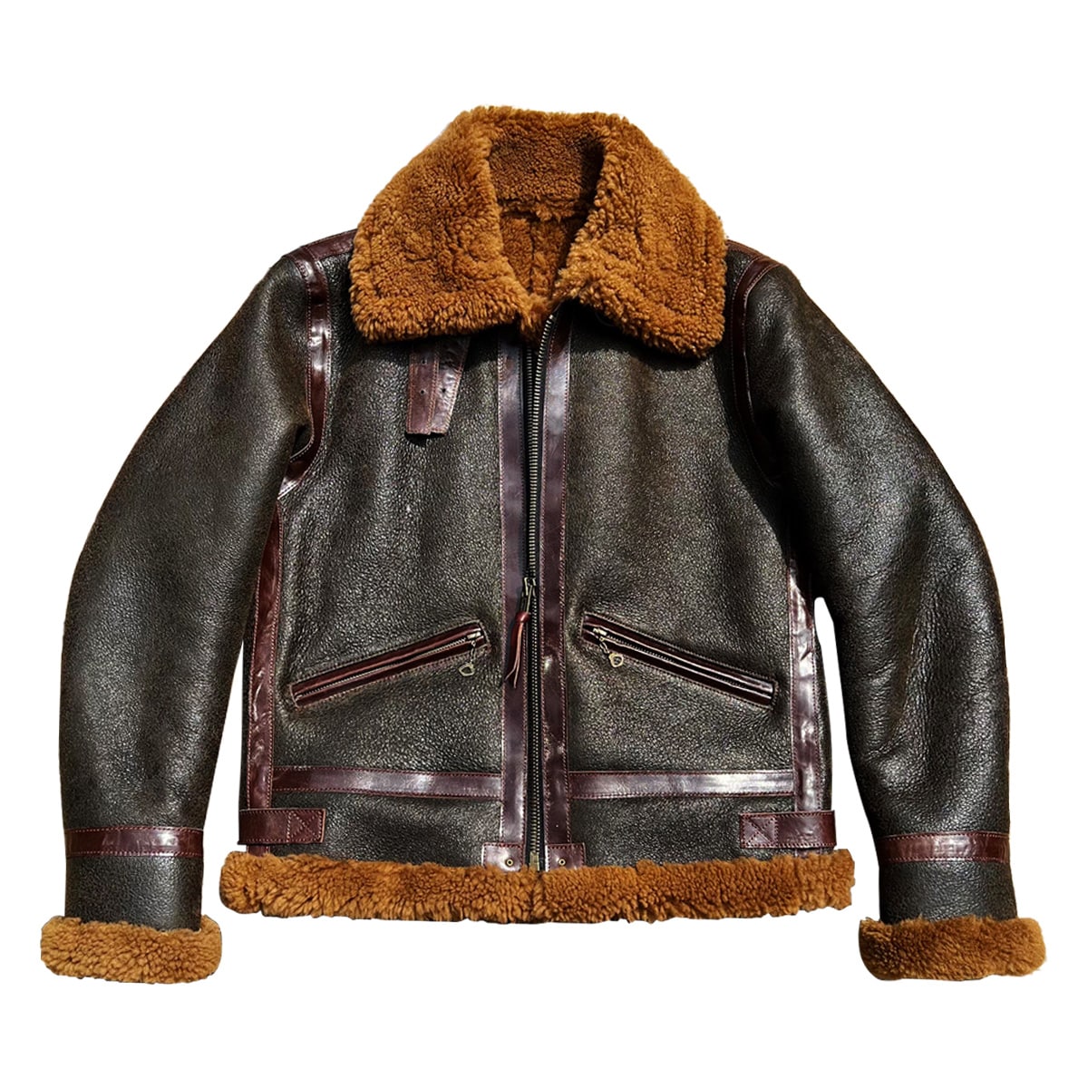 Brown B3 Aviator Genuine Sheepskin Leather Jacket: Embrace Winter with Military-Inspired Elegance