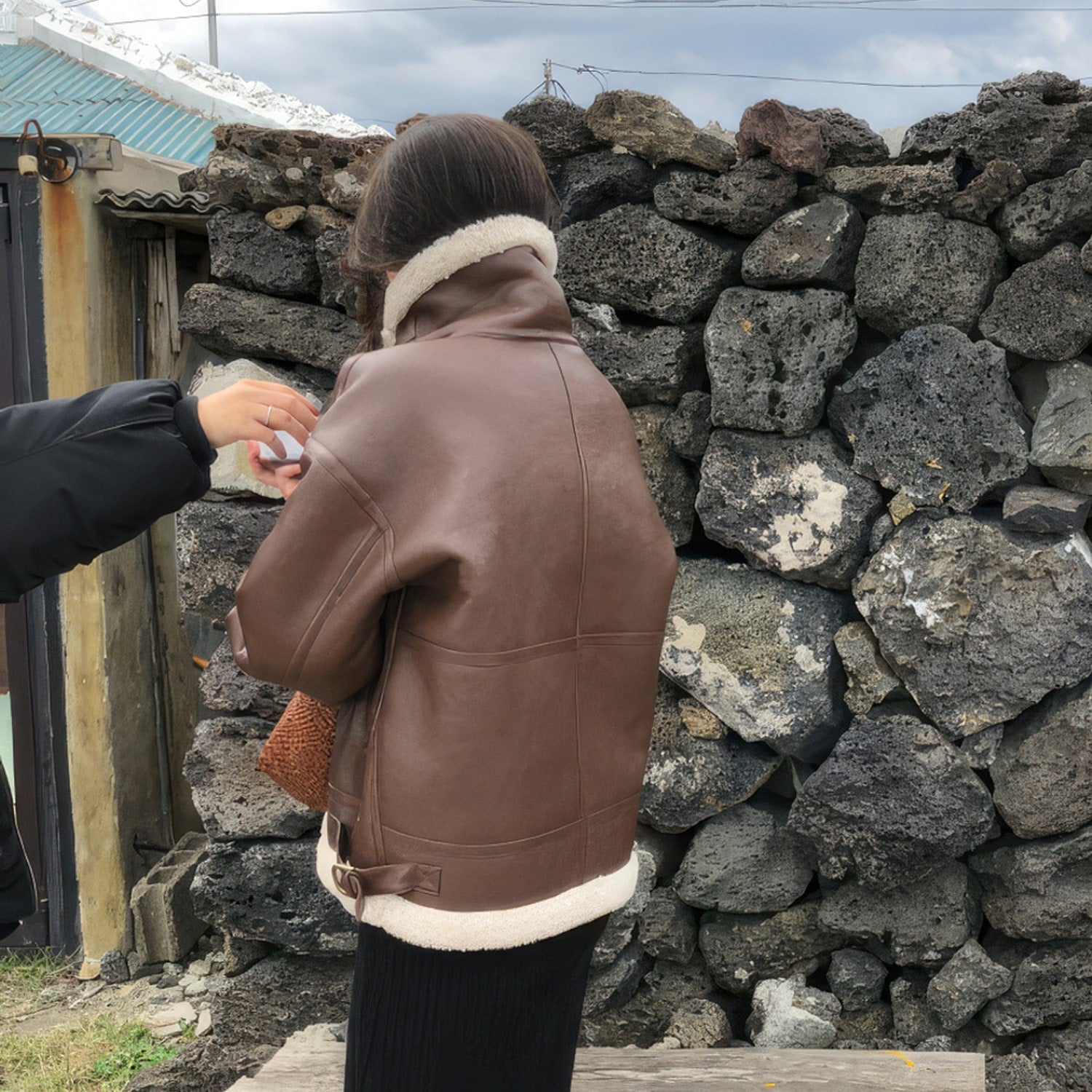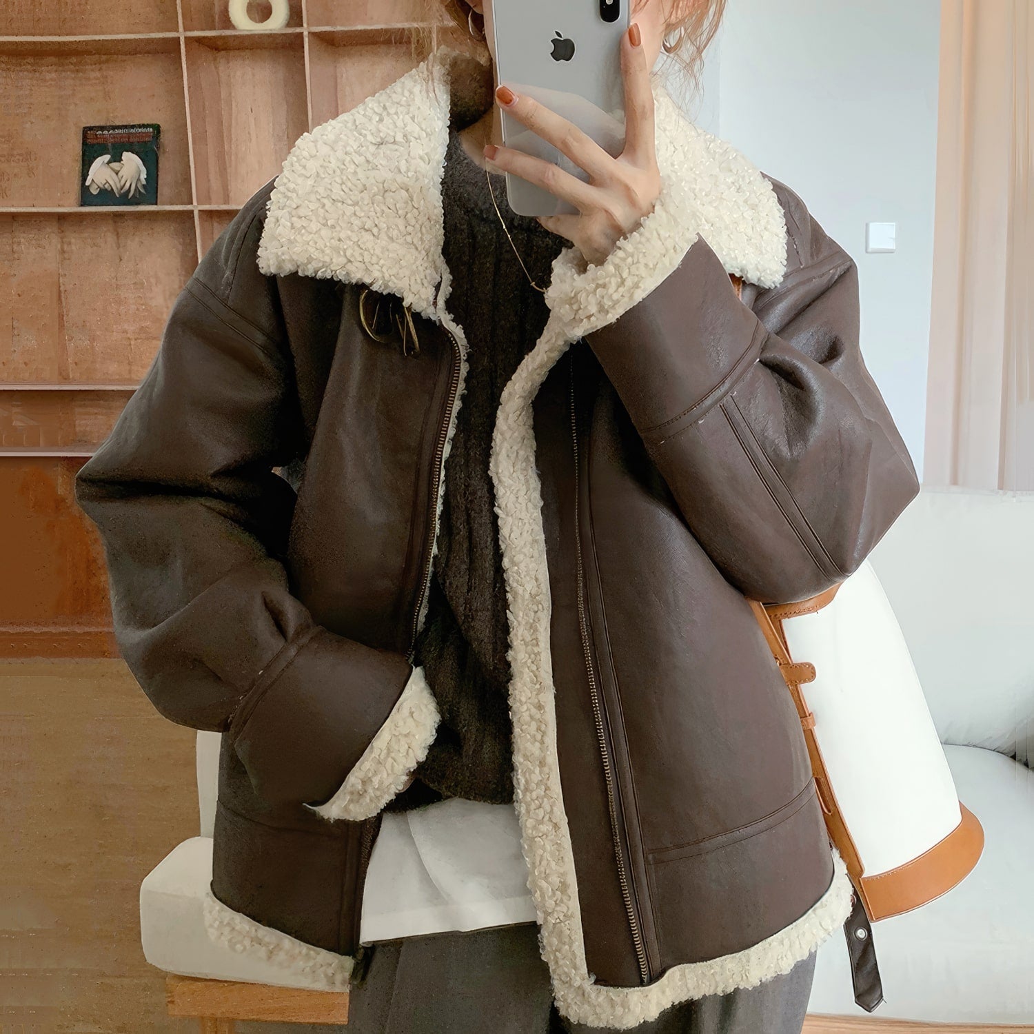 Auburn Bomber Genuine Sheepskin Shearling Jacket: Winter Warmth with Retro Military Style