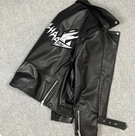 Classic Style Motorcycle Leather Jacket with Sailboat Embroidery