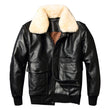 Men’s A2 Aviator Black Genuine Sheepskin Faux Fur Collar Air Force Pilot Casual Classic Bomber Leather Jacket