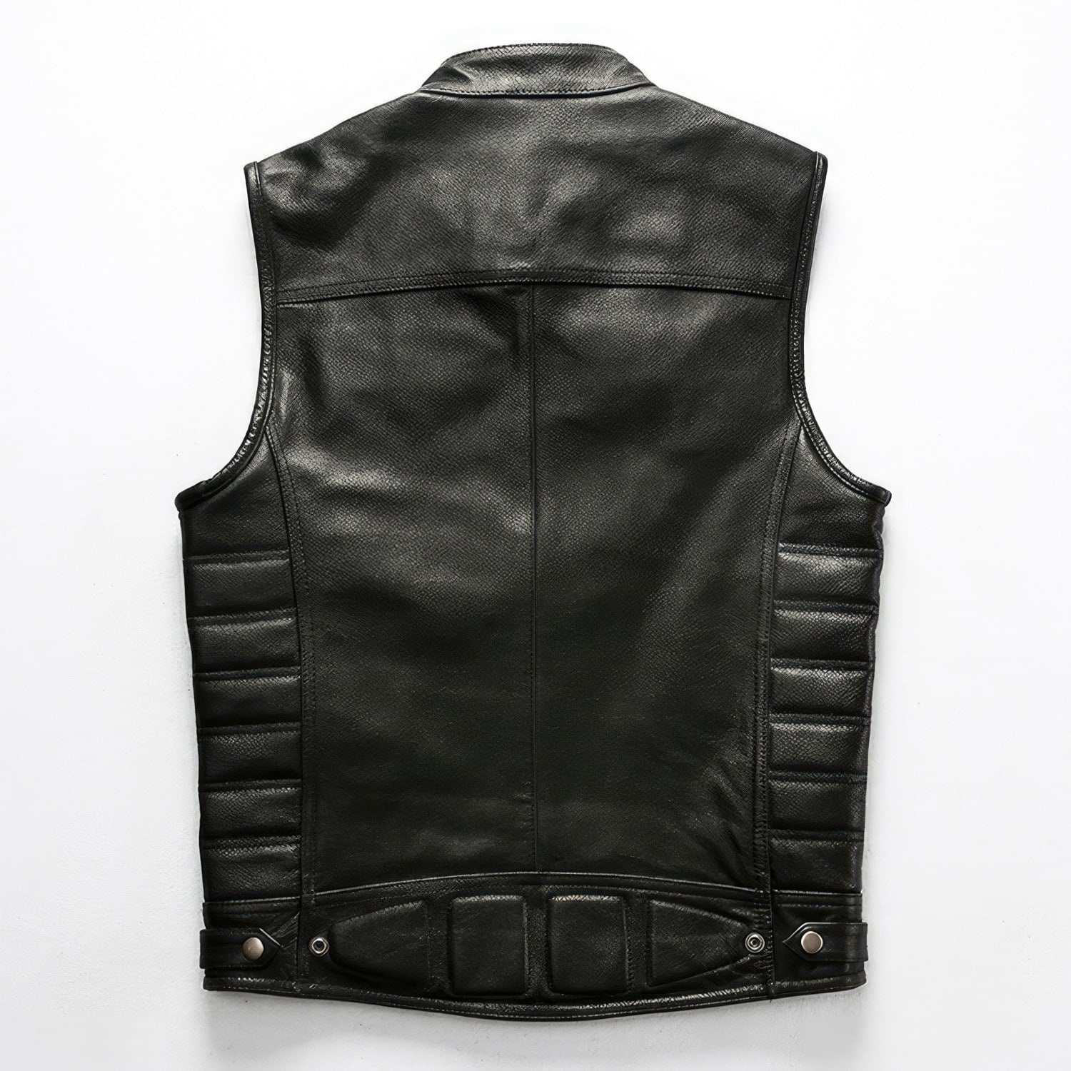 Men’s Biker Black Genuine Cowhide Sleeveless Vest Quilted Zip-Up Moto Lightweight Classic Smooth Slim Fit Leather Waistcoat