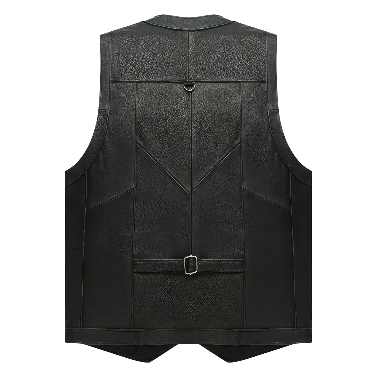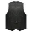 Men’s Black Biker Genuine Cowhide V-Neck Cafe Racer Vest Multi Pockets Motorcycle Sporty Racer Leather Waistcoat