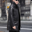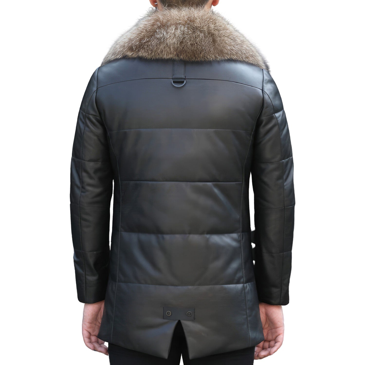 Men’s Black Genuine Sheepskin Detachable Sherpa Shearling Faux Fur Lined Business Thick Warm Slim Fit Padded Leather Puffer Jacket