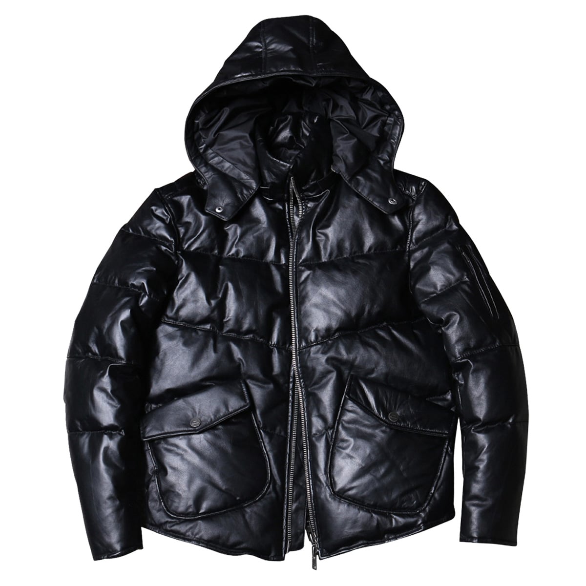 Men’s Black Genuine Sheepskin Removable Hood Padded Fashionable Warm Outfit Winter Puffer Leather Jacket