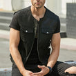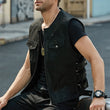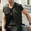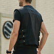 Men’s Black Genuine Sheepskin Side Adjustment Strap Sleeveless Vest Moto Biker Slim Fit Classic Sporty Zip-Up Leather Waistcoat