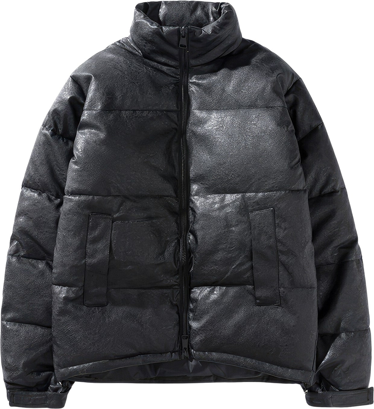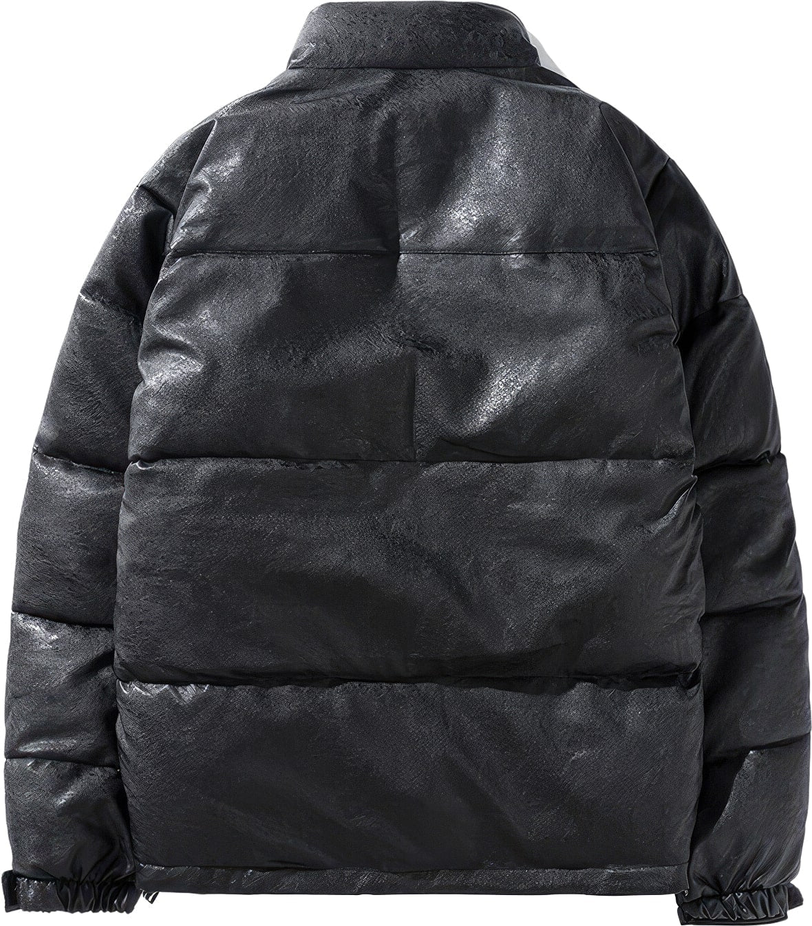 Men’s Black Genuine Sheepskin Stand Collar Winter Warm Casual Baggy Style Padded Puffer Leather Jacket