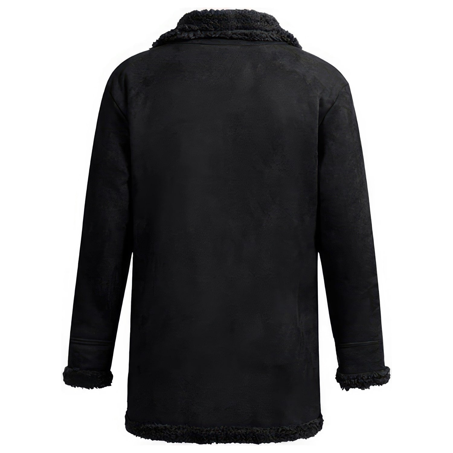 Men’s Black Genuine Suede Sherpa Shearling Faux Fur Lined Winter Warm Single Breasted Fashionable G1 Military Leather Coat