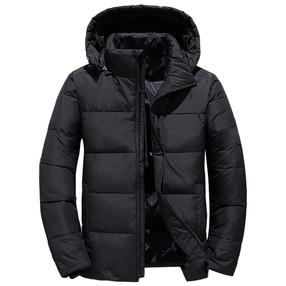 Men’s Black Parachute Removable Hood Warm Padded Design Casual Polo Neck Puffer Jacket