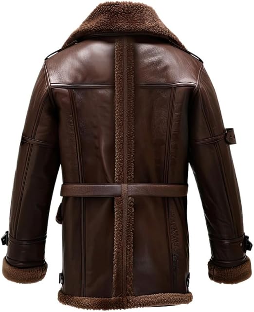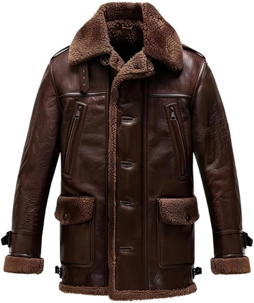 Men’s Brown Genuine Sheepskin Jacket with Sherpa Shearling Faux Fur
