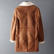 Men’s Brown Suede Sherpa Shearling Faux Fur Lined Double Breasted Lapel Collar Winter Warm Casual Classic Rugged Trench Coat