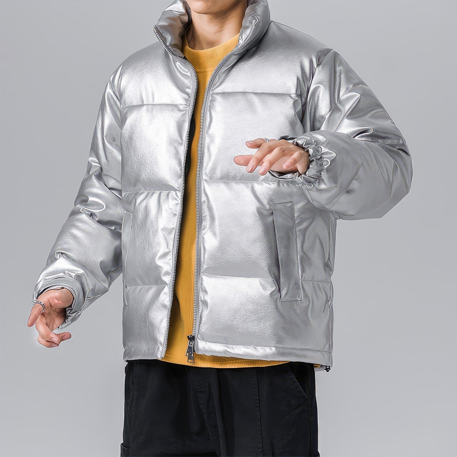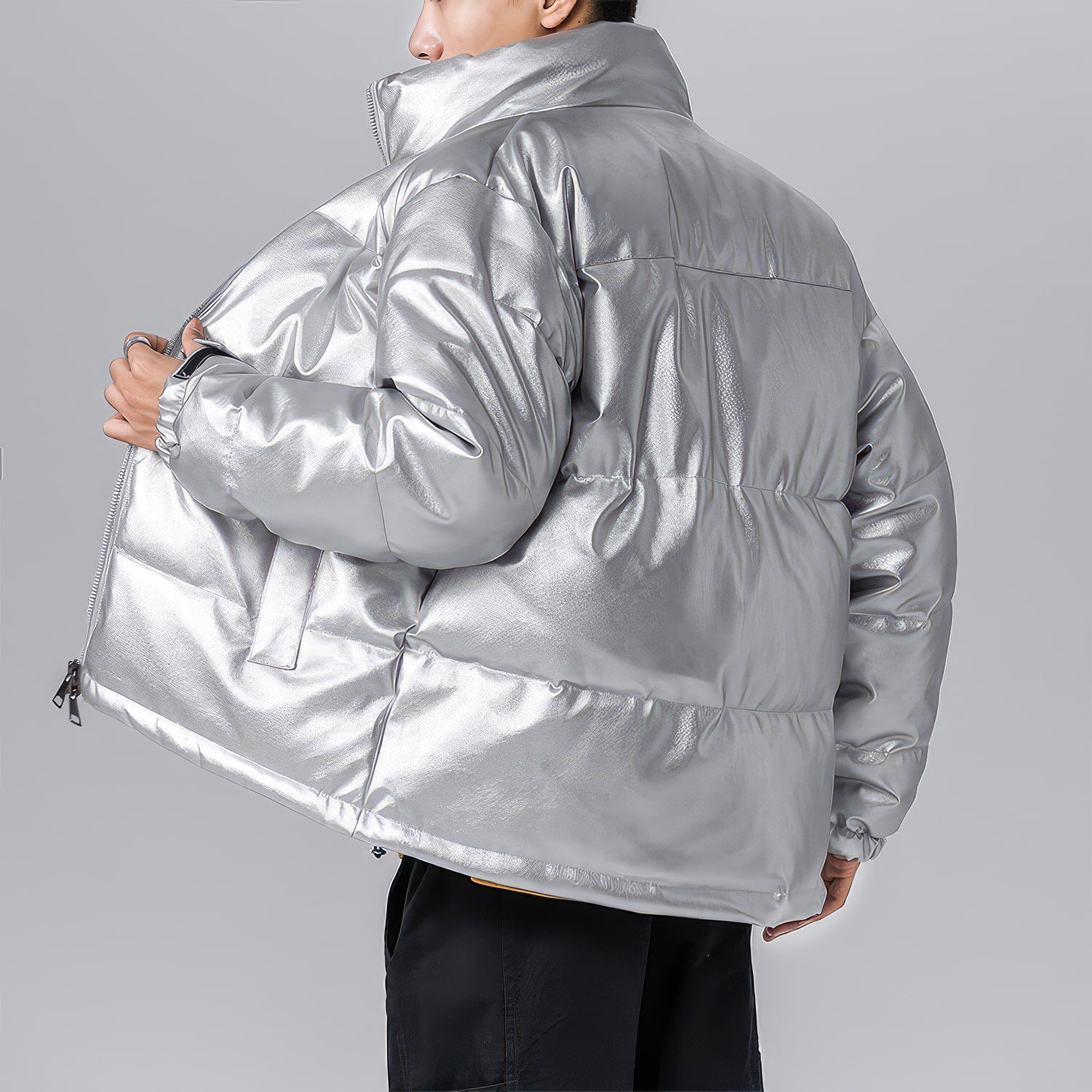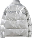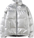 Men’s Grey Genuine Sheepskin Stand Collar Winter Warm Casual Baggy Style Padded Puffer Leather Jacket