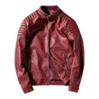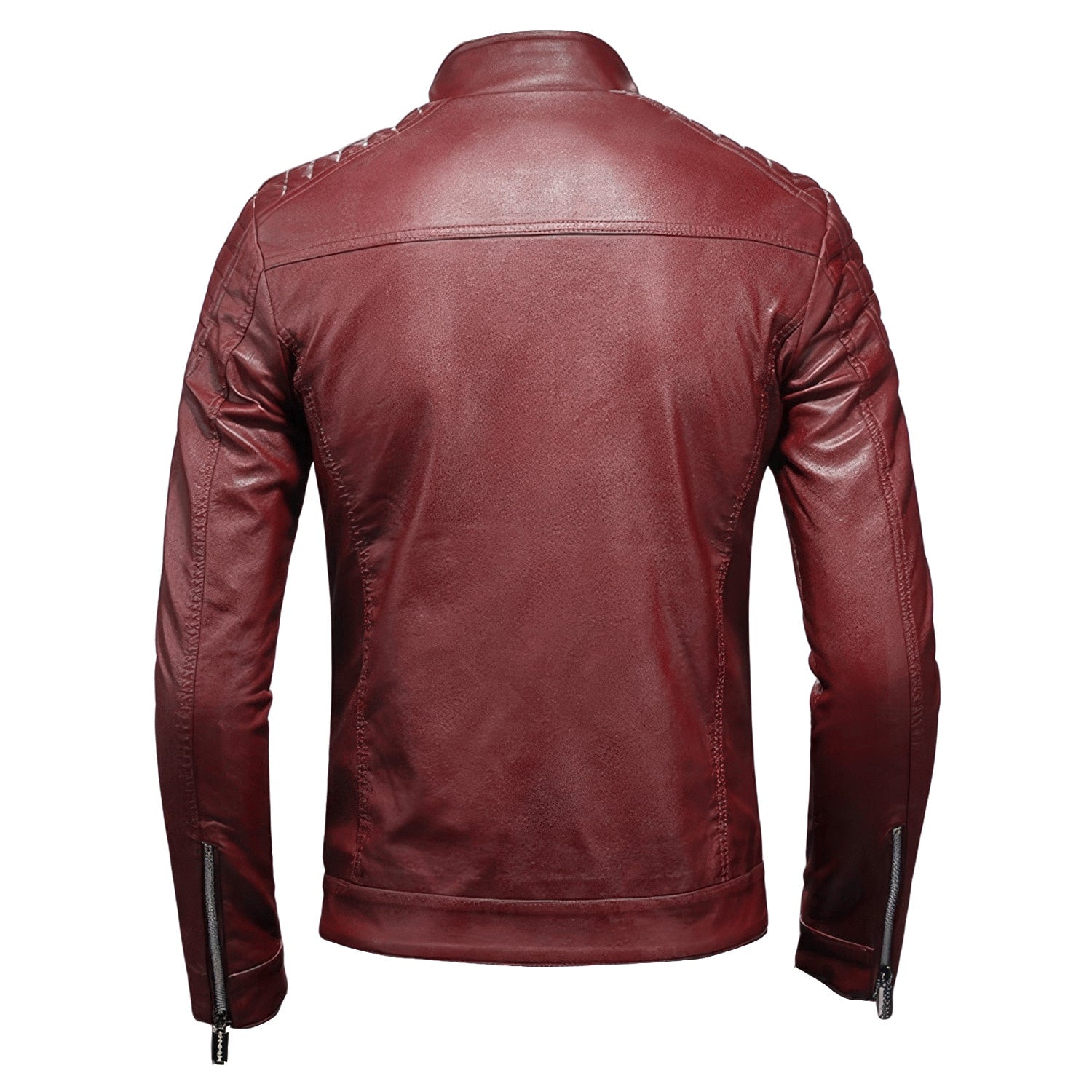 Men’s Red Biker Genuine Sheepskin Quilted Shoulders Smooth Scooter Cafe Racer Streetwear Slim Fit Leather Jacket