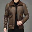 Men’s Vintage Distressed Brown Genuine Sheepskin Sherpa Shearling Faux Fur Lined Turn-Down Collar Fashionable Streetwear Winter Warm Leather Jacket