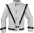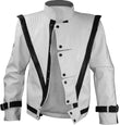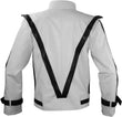 Men’s White Genuine Sheepskin Quilted Shoulders Classic Retro Fashion Celebrity Inspired Black Strips Cosplay Leather Jacket