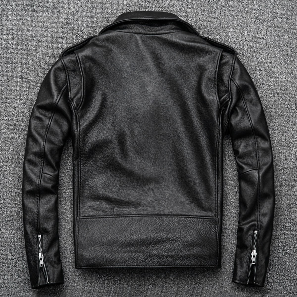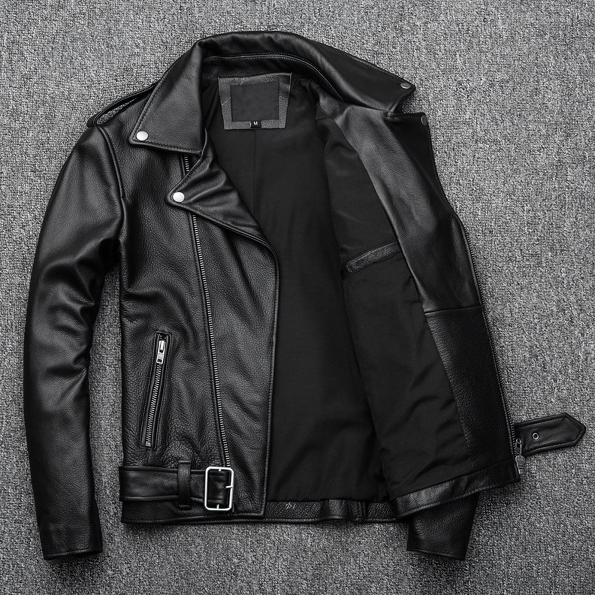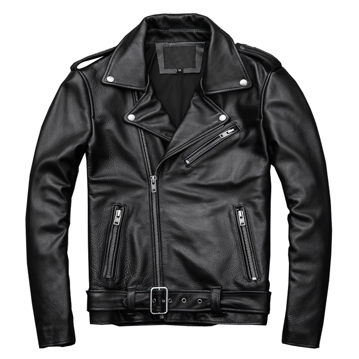 Men's Black Brando Biker Leather Jacket – Genuine Cowhide, Asymmetric Design, Slim Fit