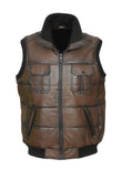 Men's Brown Leather Motorcycle Biker Club Vest for Riding