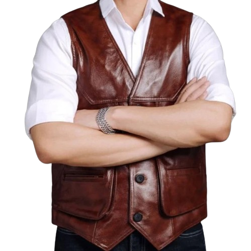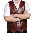 Men's Brown Leather Vest - 100% Genuine Leather Dress Vest