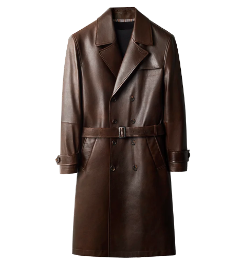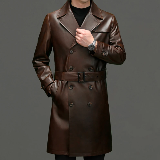 Men's Business Leather Trench: Classic Style in Solid Colors