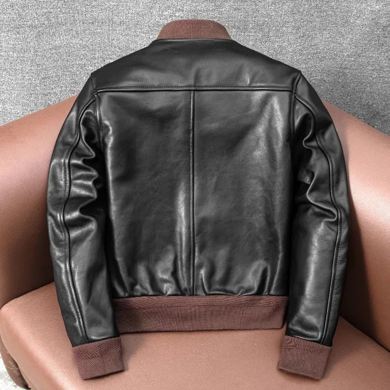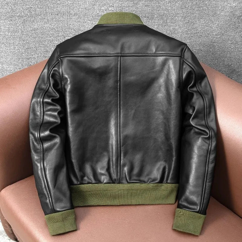 Men's Classic A1 Bomber Jacket - Genuine Cowhide Leather Casual Fashion