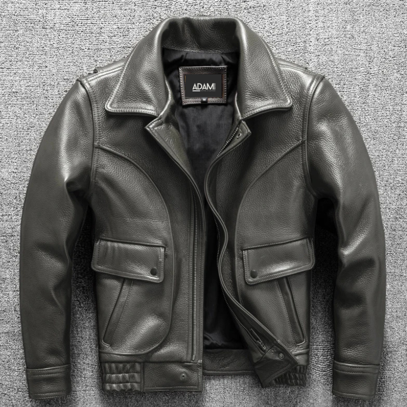 Men's Classic Casual Waxed Cowhide Leather Jacket