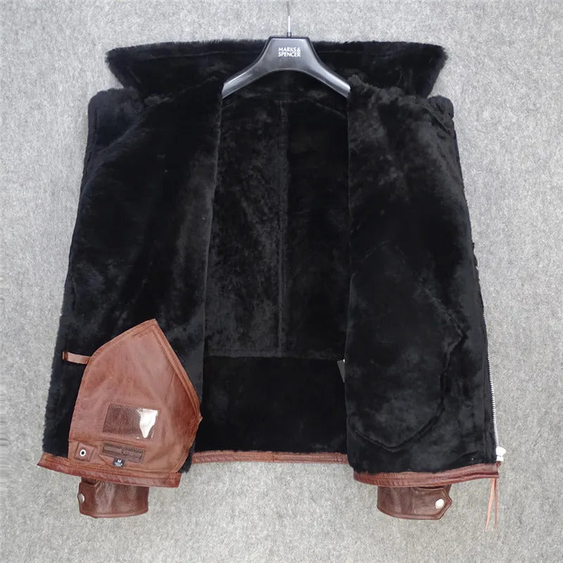 Men's Genuine Cow Leather Jacket with Shearling Faux Fur Lining