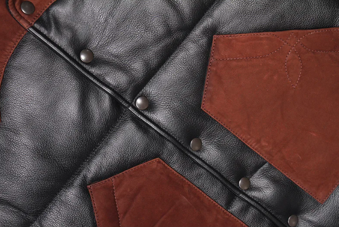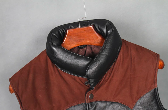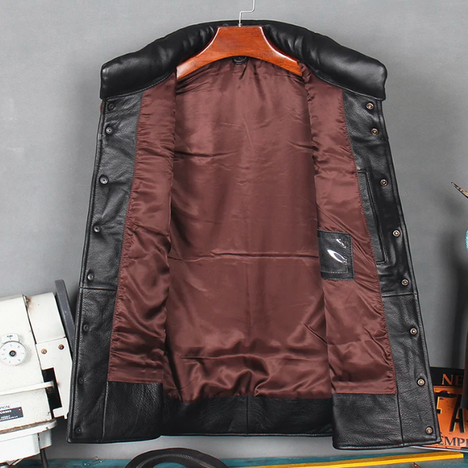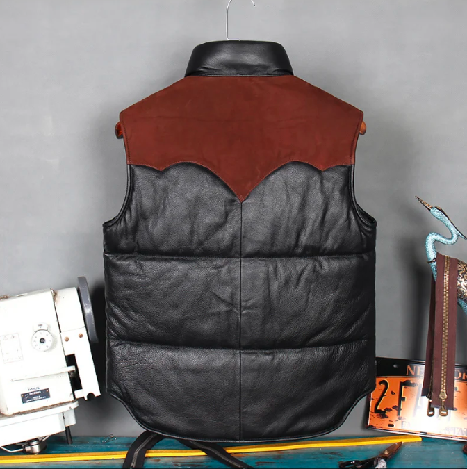 Men's Genuine Cow Leather Winter Vest Jacket with Sheepskin Lining