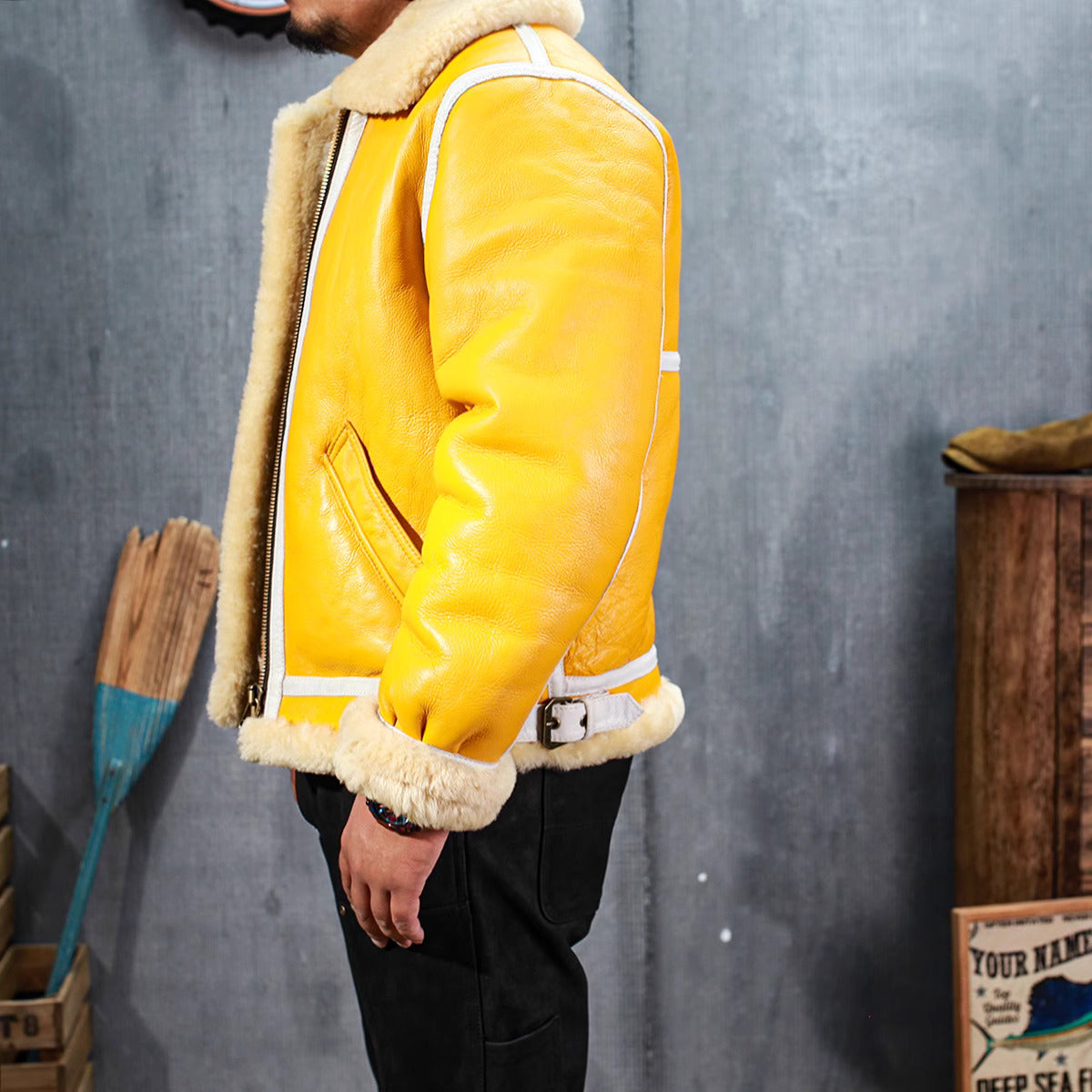 Men's Genuine Sheepskin B3 Shearling Bomber Jacket with Faux Fur