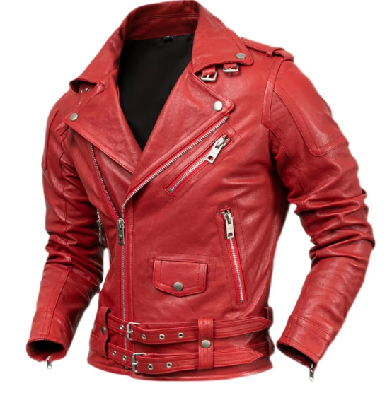 Men's Genuine Sheepskin Leather Motorcycle Biker Jacket
