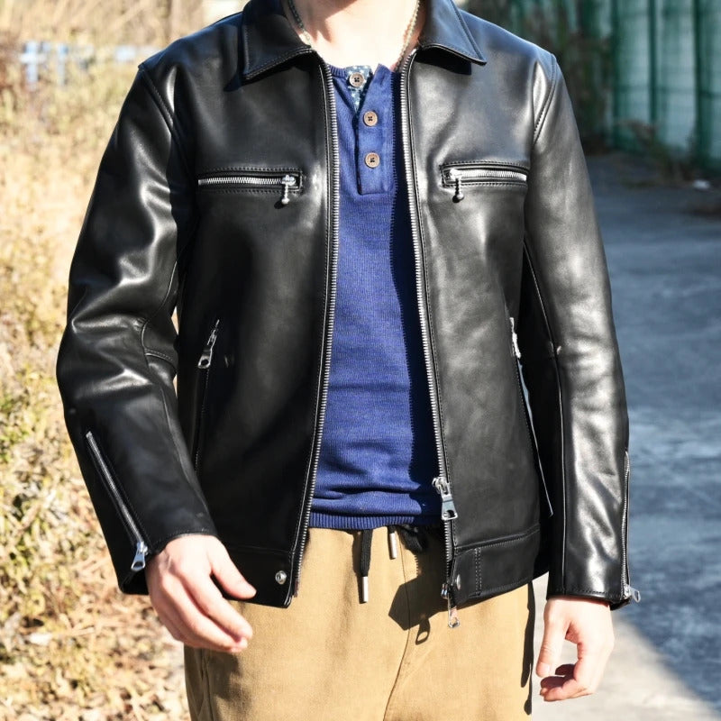Men's Genuine Vintage Cowhide Leather Motorcycle Jacket