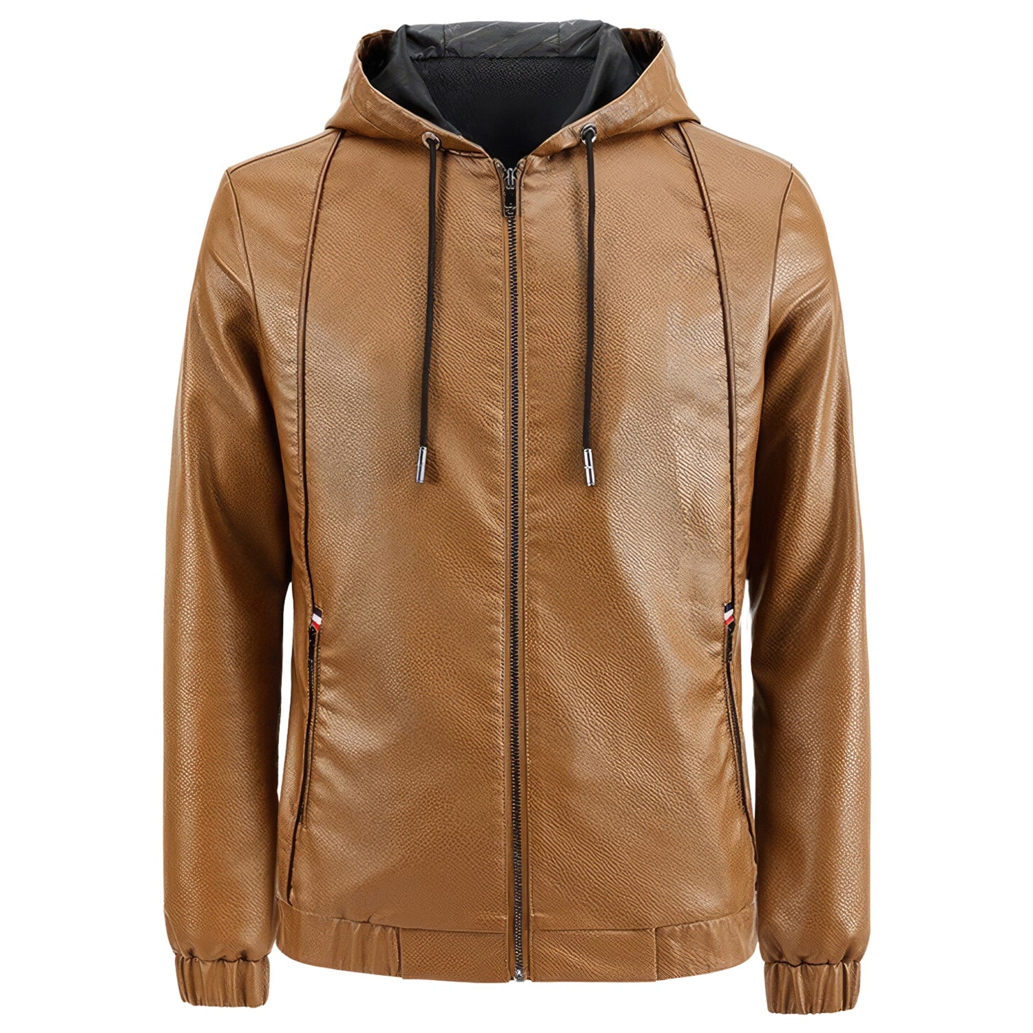 Men's Hooded Genuine Sheepskin Biker Jacket: Retro Cafe Racer Style