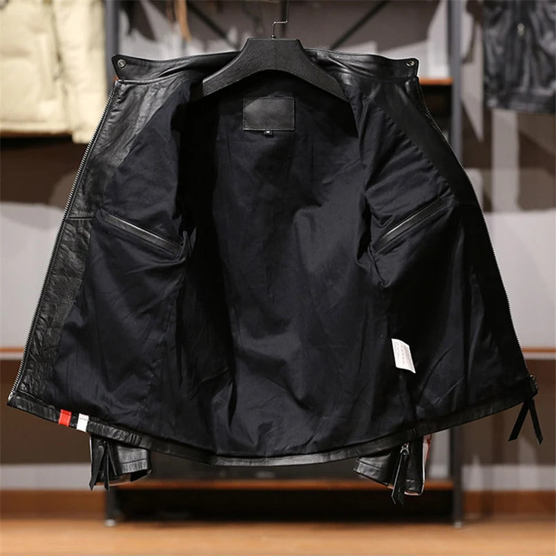 Men's Knight J100 Genuine Leather Jacket with Stand Collar & Red Stripe