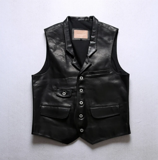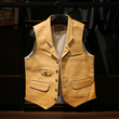 Men's Motorcycle Biker Slim Fit Leather Vest: Youth Short Sleeveless Jacket