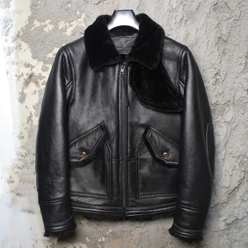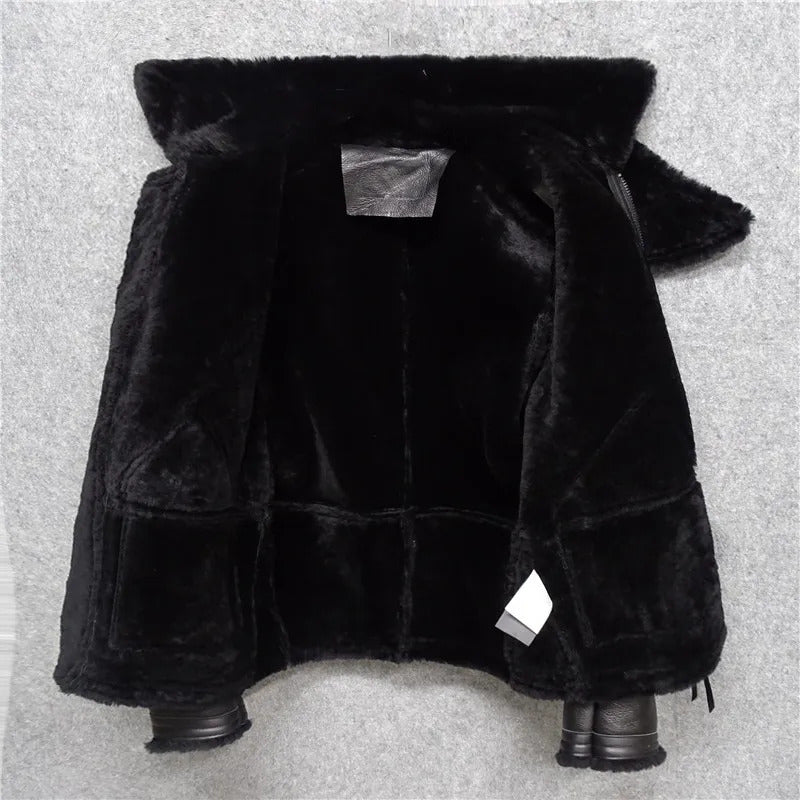 Men's Natural Sheepskin Shearling Leather Bomber Jacket