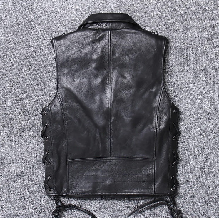 Men's Premium Cowhide Motorcycle Vest - Vintage Designer Style