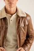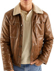 Men's Premium Genuine Lambskin Leather Jacket with Fur Collar - Classic Style