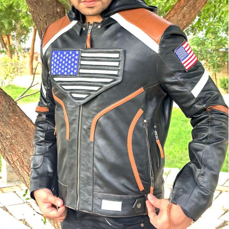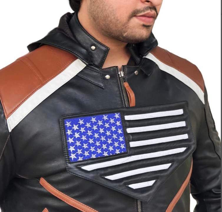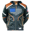 Men's Premium Genuine Leather Biker Jacket with USA Flag - New Style