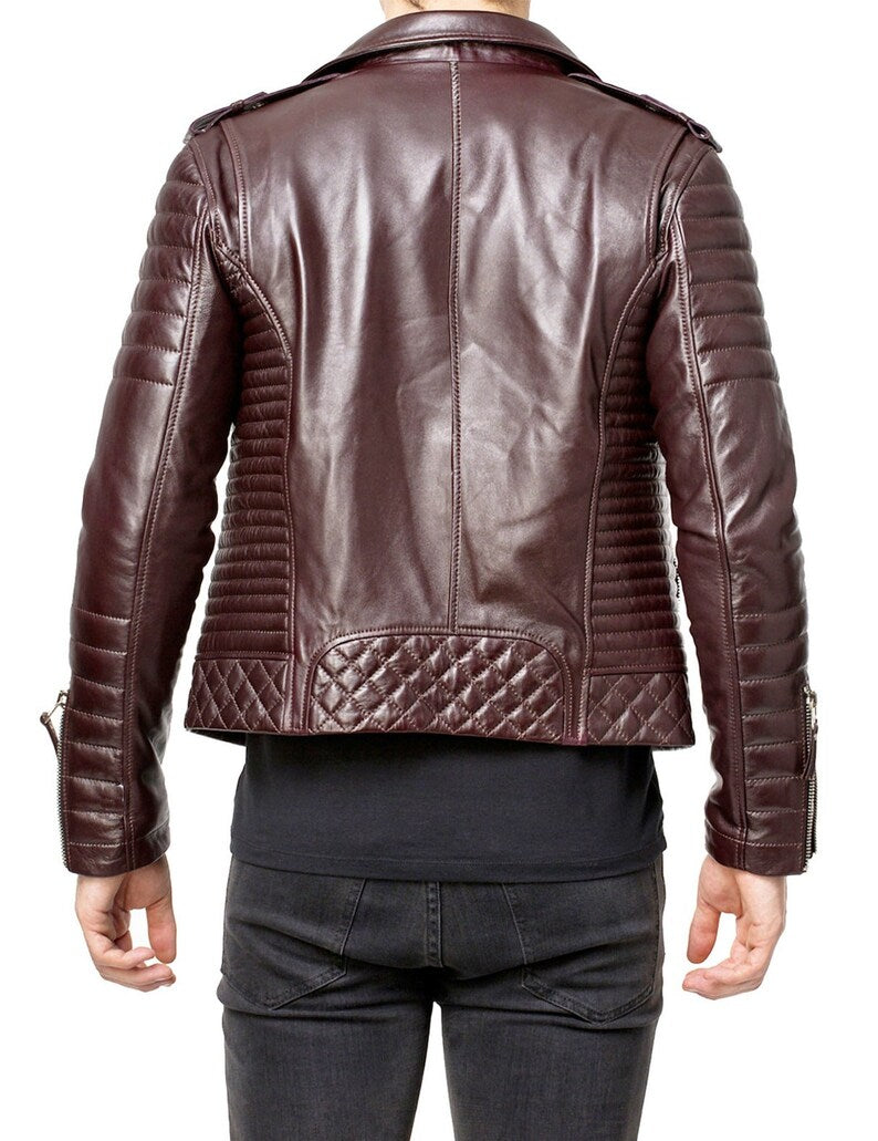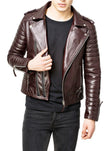 Men's Slim Fit Brown Lambskin Motorcycle Biker Leather Jacket